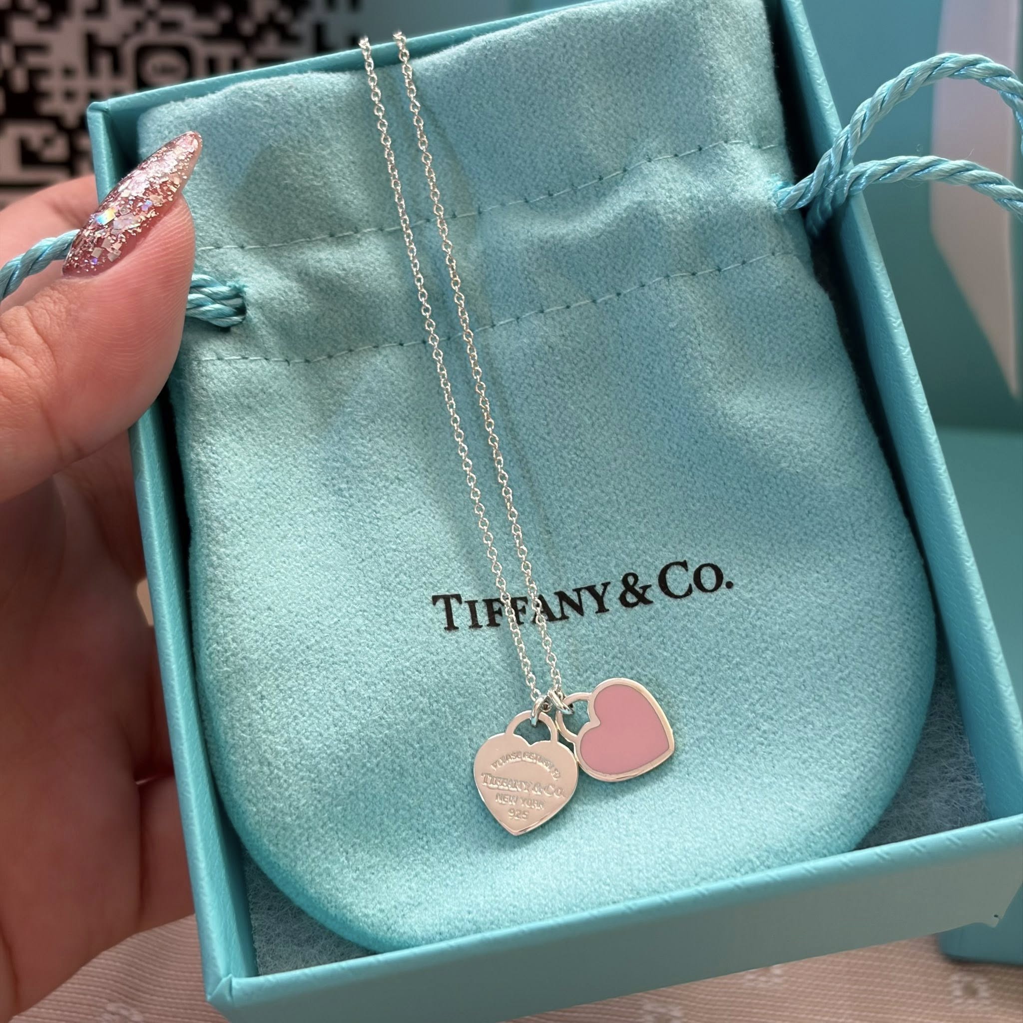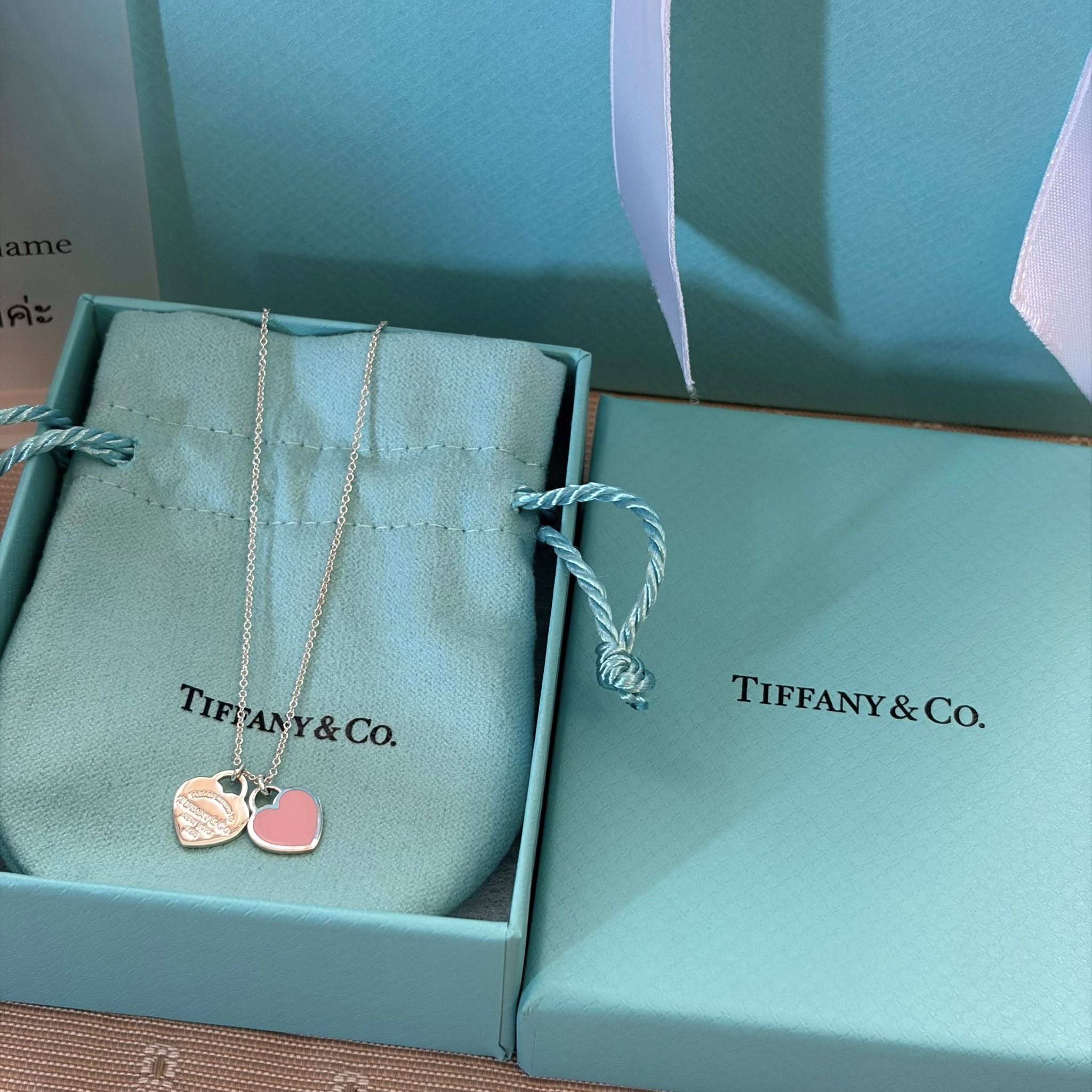 Tiffany mini double heart ปี25 สร้อยคอเงินรุ่นฮิต ของเเม่ค้าใช้เองค่ะ ใส่ 2 ที ไร้ตำหนิ อปก.fullset + copy rec.