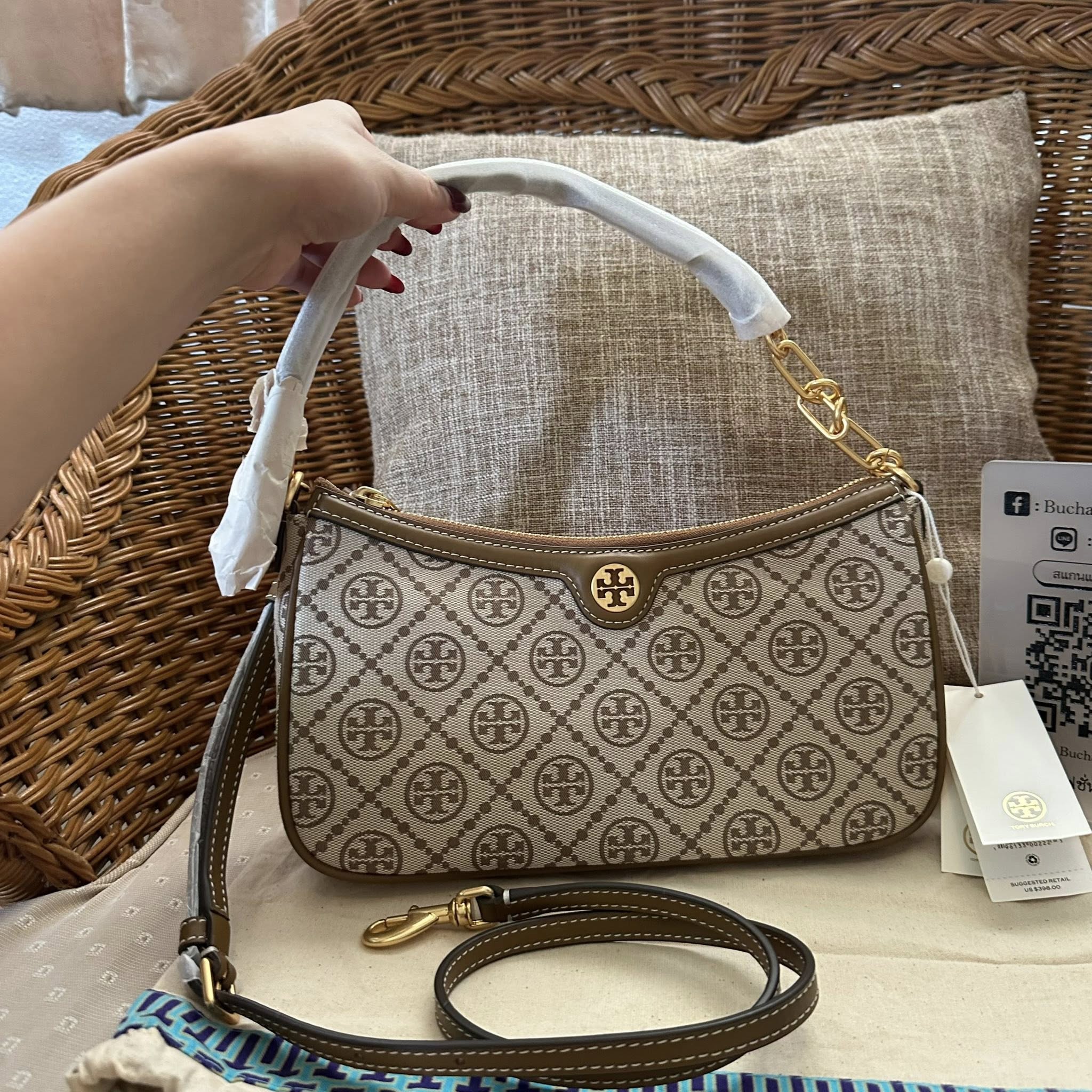 Tory Burch T Monogram มือ1 รุ่นนี้เเพงค่า เเคนวาสทั้งใบ ใส่ของได้เยอะ อปก.ถุงผ้า,ป้ายห้อย,สายยาว